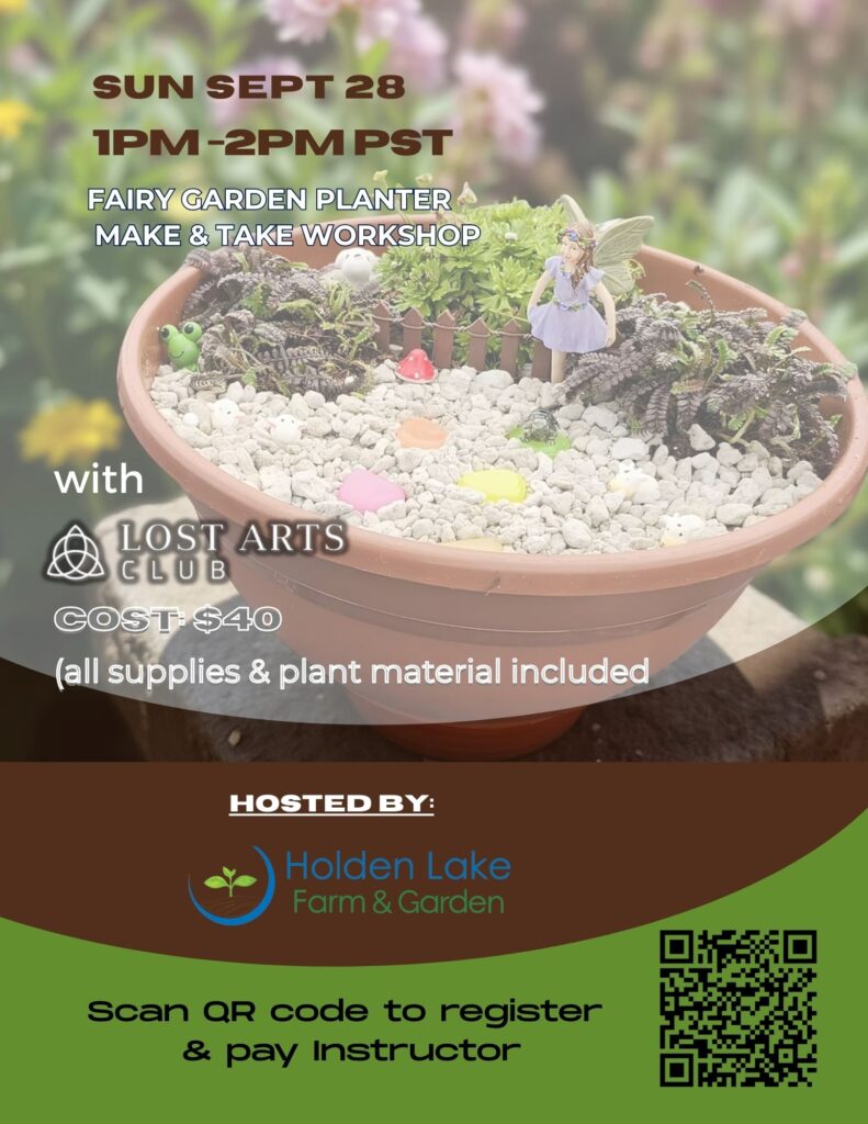 • Fairy Garden Planter Workshop — Jennifer Doll from Lost Arts Club returns to guide you through creating a magical, miniature garden world.
