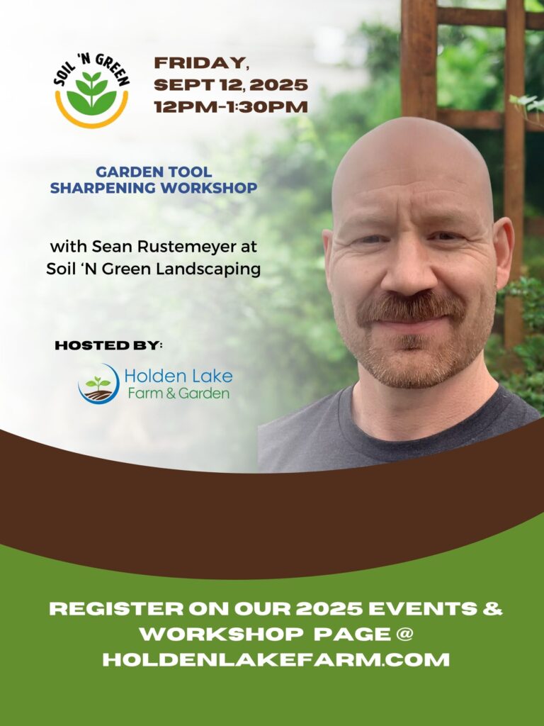 • Put Your Tools to Bed (Sharpening Workshop) — Back by popular demand! Sean Rustemeyer of Soil ’N Green Landscaping returns to help you get your tools in shape before winter.